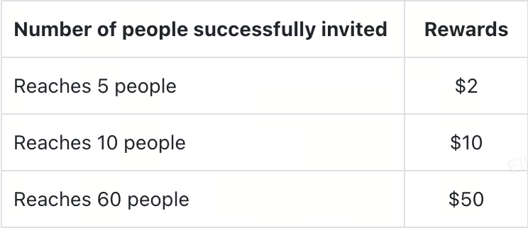 يشارك المستخدمون هذا الحدث مع الأصدقاء من خلال رابط المشاركة. وعندما يتمكن الأصدقاء المدعوون من تسجيل الدخول بنجاح إلى صفحة الحدث وإكمال أي مهمة، يمكن للمدعو الحصول على مكافأة تصل إلى 50 دولارًا.