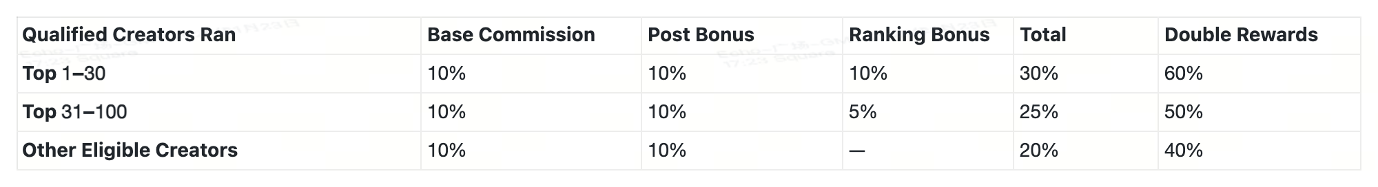 يحصل المنشئون الجدد الذين ينضمون إلى Gate Square لأول مرة، أو المنشئون العائدون الذين لم ينشروا لمدة تزيد عن شهر، على مكافآت مزدوجة على كل من العمولة الأساسية ومكافأة التصنيف. كلما أنشأت أكثر، كلما ربحت أكثر.