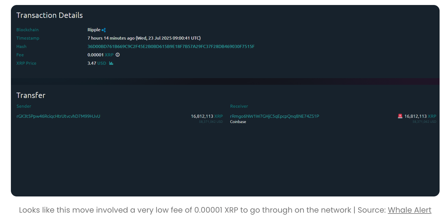 تحذير من البيع: 16800000 قطعة XRP (58300000 دولار أمريكي) تصل إلى CEX