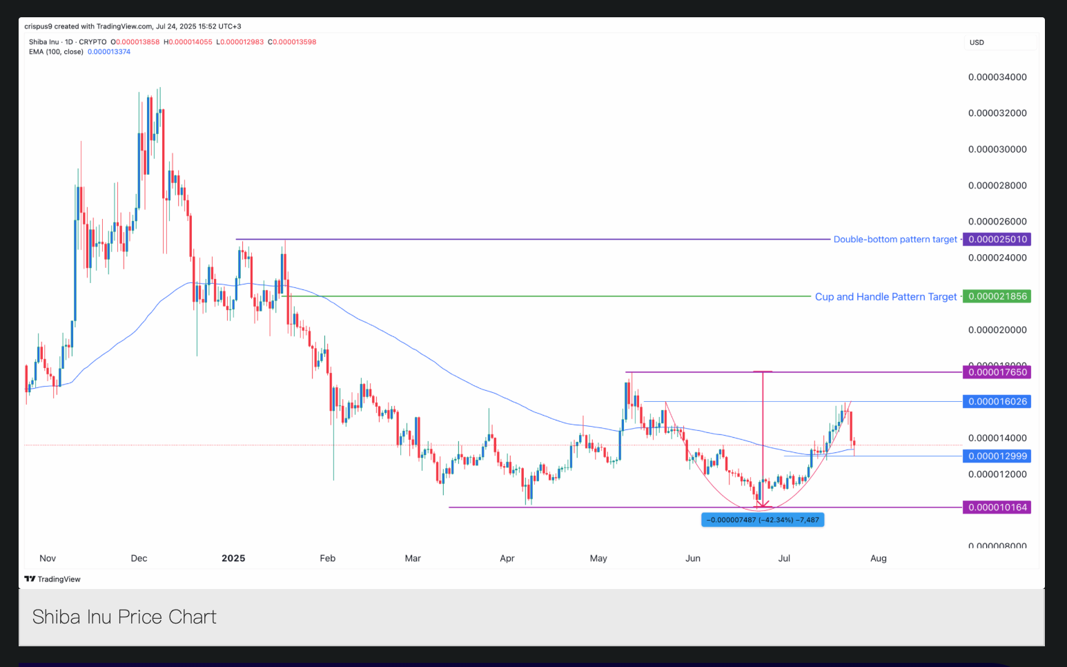 سوق الأصول الرقمية اليوم تحت ضغط عام، ولم يستطع سعر Shiba Inu الهروب من ذلك. انخفض سعر SHIB بنسبة 2%، حيث وصل أدنى مستوى له إلى 0.000013 دولار، وانخفض حجمه آخر 24 ساعة إلى 550 مليون دولار. يعتبر هذا الانخفاض جزءًا من مرحلة التصحيح بعد أن تراجع SHIB بأكثر من 15% من ذروته هذا الشهر، ويتماشى مع الاتجاه التصحيحي للعملات البديلة الرئيسية الأخرى مثل Ethereum (ETH) و Bitcoin (BTC) و Solana (SOL). قد يكون السبب الرئيسي للتصحيح هو جني الأرباح، خاصة أن سعر SHIB قد ارتفع بنسبة 60% من أدنى مستوى له في 22 يونيو إلى أعلى مستوى له في 21 يوليو.