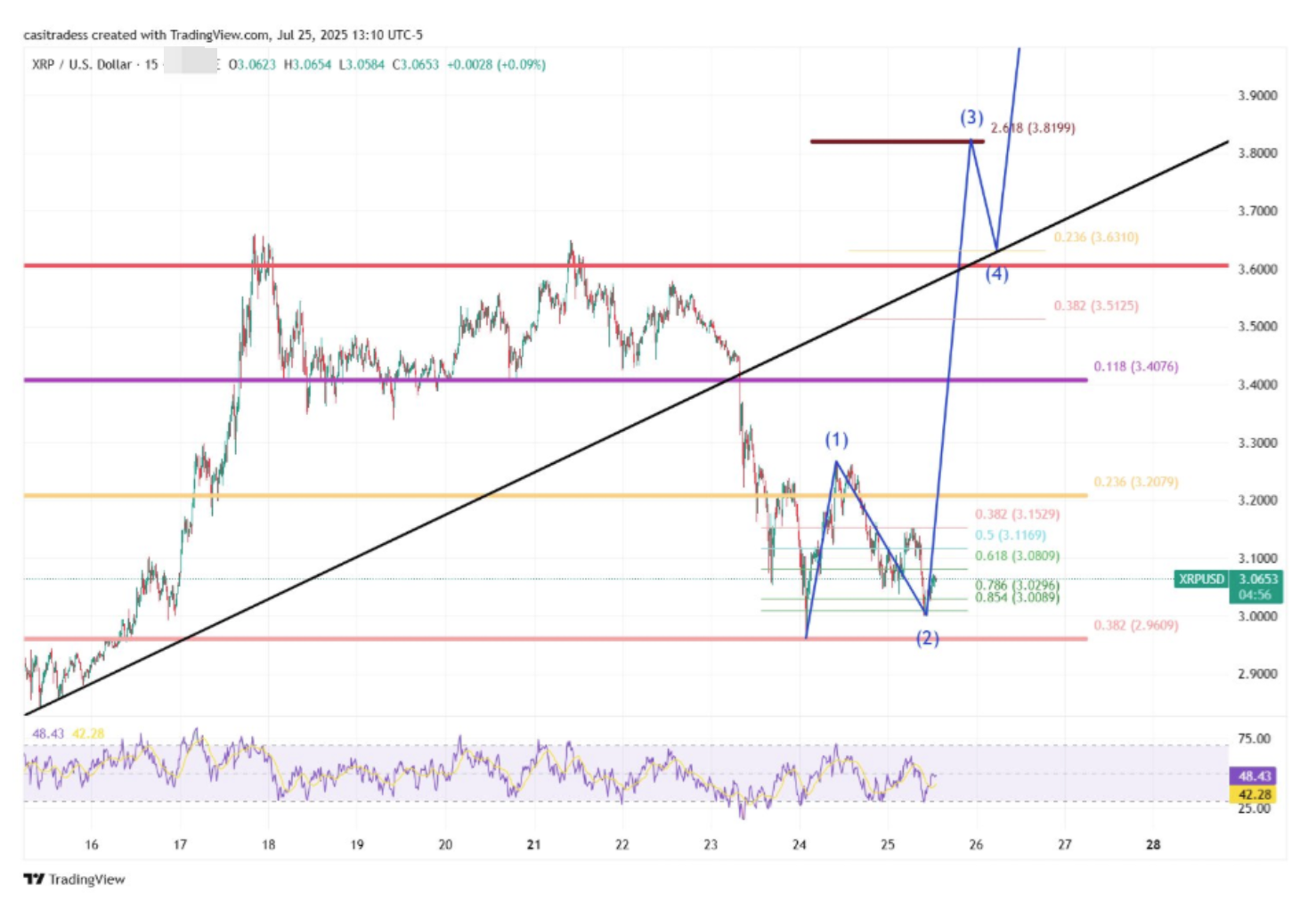 تأكيد الدعم عند العودة: بعد الوصول إلى أعلى مستوى جديد عند $3.65 في 24 يوليو، عادت XRP لاختبار مستوى الدعم الحاسم عند $3.00 ونجحت في الحفاظ عليه، ولم تتشكل قاع جديد. وقد تم تحديد هذا السعر من قبل العديد من المحللين كمنصة قاع جديدة.