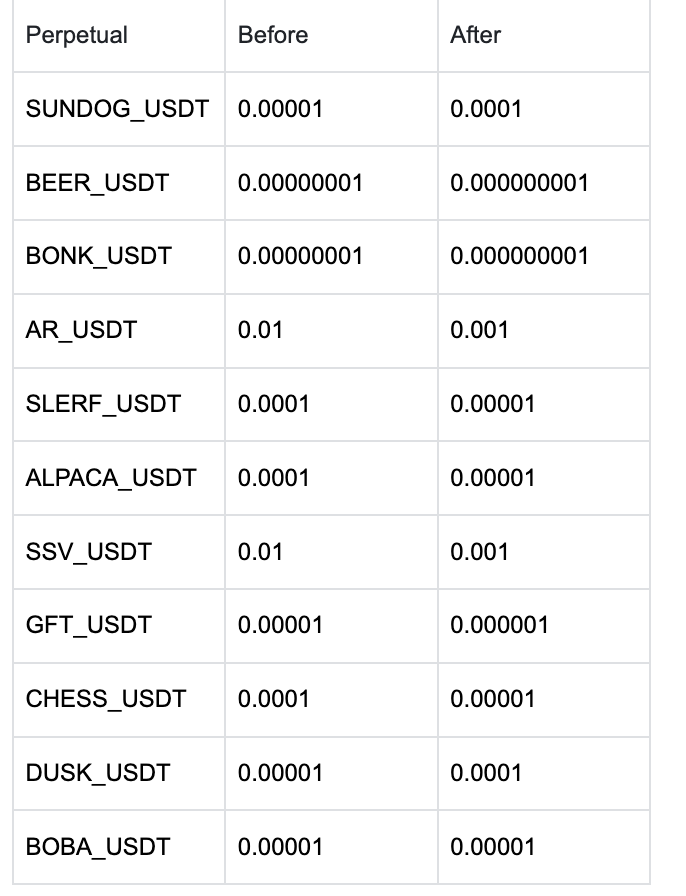 Ajuste del tamaño del tick para los contratos perpetuos en USDT-M