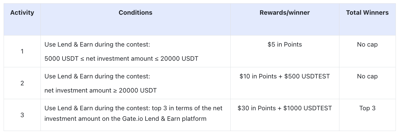 In this money management contest, all of you can earn ultrahigh bonuses of Points and USDTEST as long as your net amount lent meets the specified condition. Join now and lend & earn like a pro.