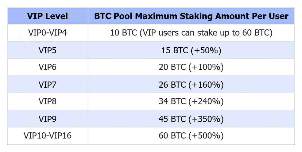 Les utilisateurs VIP5 et plus bénéficient de limites de mise en jeu exclusives lorsqu'ils participent à Launchpool, avec un bonus de limite de mise en jeu allant jusqu'à 500%.