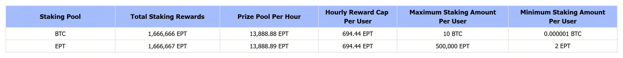 Le solde (EPT) sera lancé sur Gate Launchpool. Misez EPT et BTC pour gagner des récompenses en jetons EPT chaque heure.