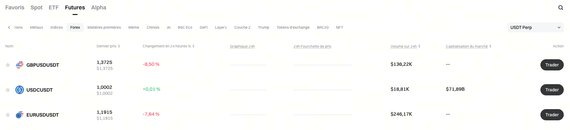 Lien d’accès : https://www.gate.com/fr/price/futures/category-forex/usdt