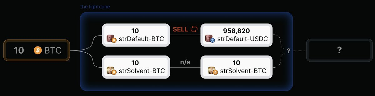 En cas de défaut : strDefault-USDC devient de l’USDC réel. Le trader a ainsi protégé sa position et vendu son BTC avant l’impact. Si aucun défaut : strSolvent-BTC redevient échangeable contre son BTC d’origine. Il reste exposé, sans coût de couverture.