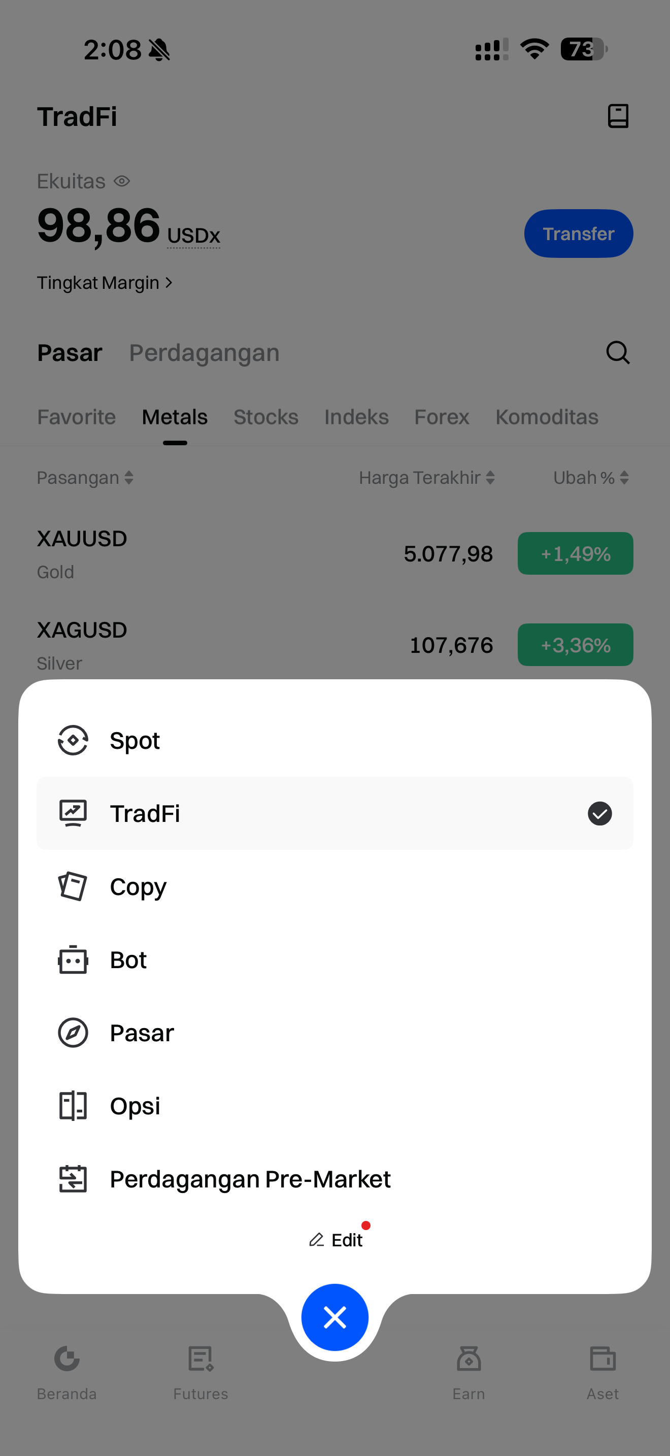 Saham, indeks, logam mulia, dan produk terkait TradFi merupakan instrumen keuangan yang tunduk pada volatilitas pasar dan risiko leverage. Pengguna disarankan untuk sepenuhnya memahami aturan produk dan risiko terkait sebelum berdagang serta membuat keputusan berdasarkan toleransi risiko masing-masing.