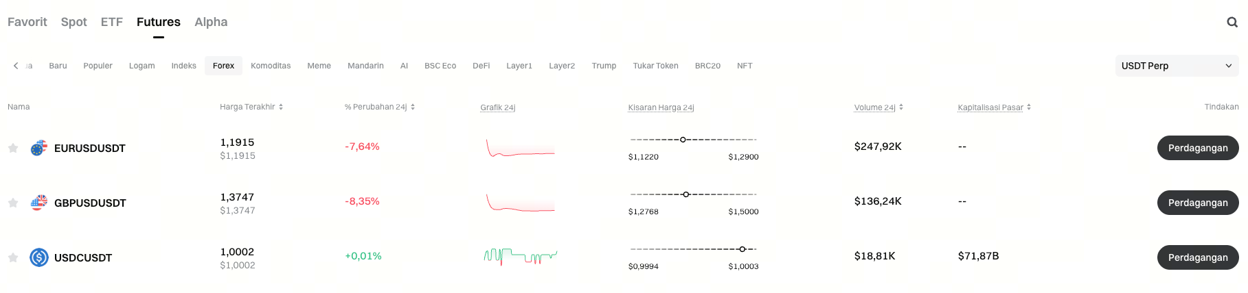 Tautan masuk: https://www.gate.com/id/price/futures/category-forex/usdt