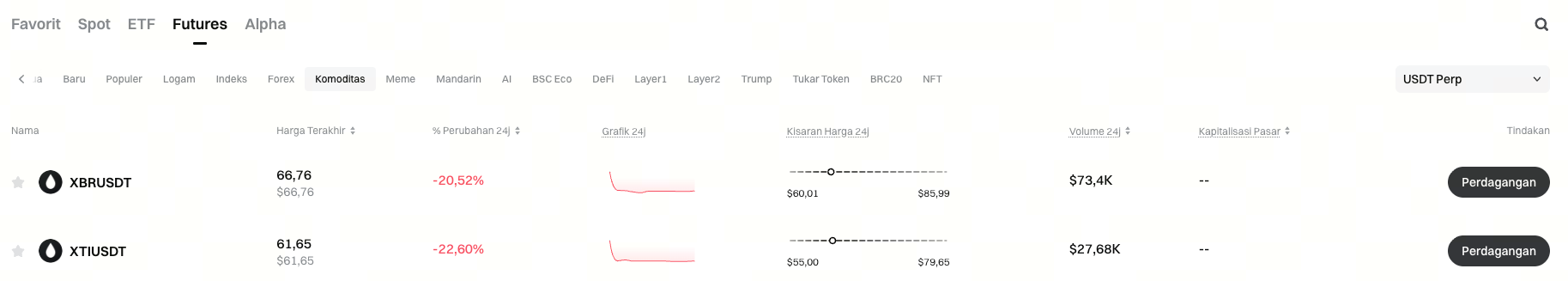 Tautan masuk: https://www.gate.com/id/price/futures/category-commodity/usdt