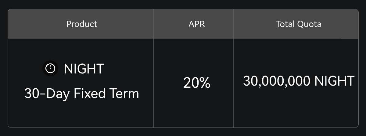 Gate meluncurkan Simple Earn x NIGHT Bonus Fase 2, menghadirkan Jangka Waktu Tetap 30 Hari dengan APR 20%. Total Pasokan untuk putaran ini adalah 30.000.000 NIGHT, tersedia berdasarkan siapa cepat dia dapat.