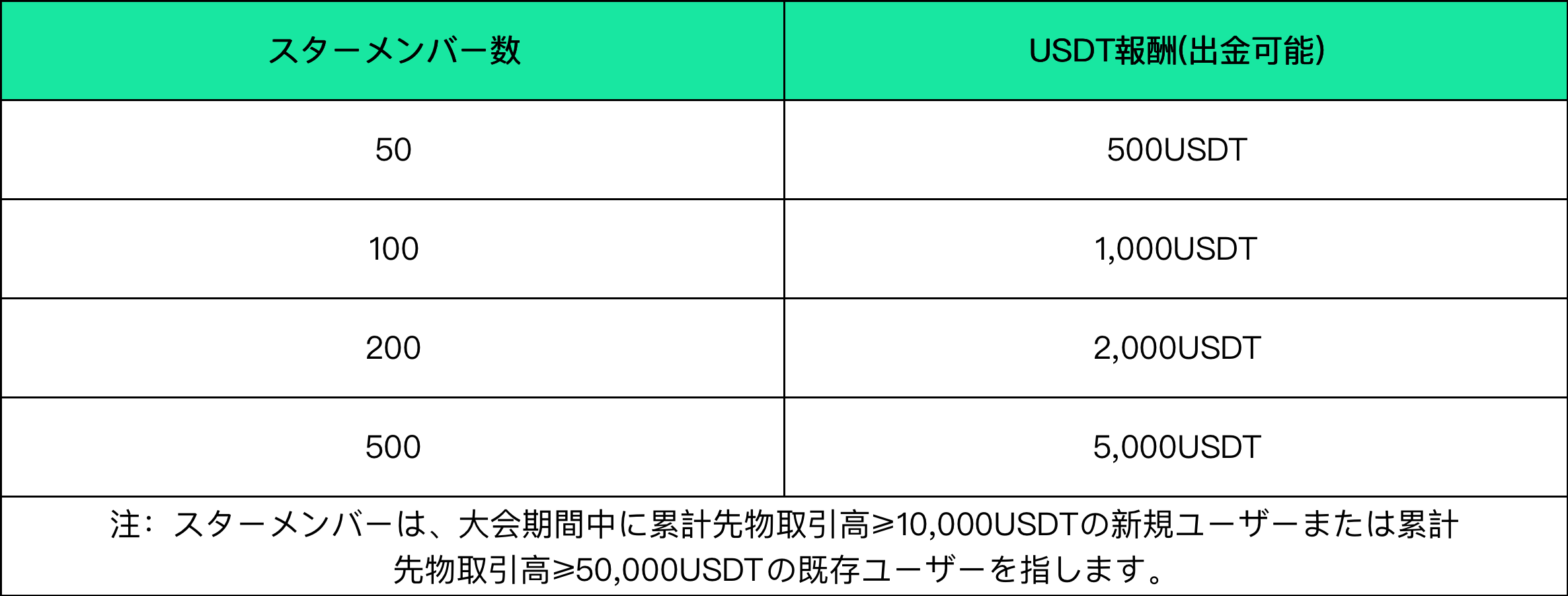スターメンバーの数が一定規模に達すると、チームリーダーに追加報酬(最大5,000USDT)が与えられます。