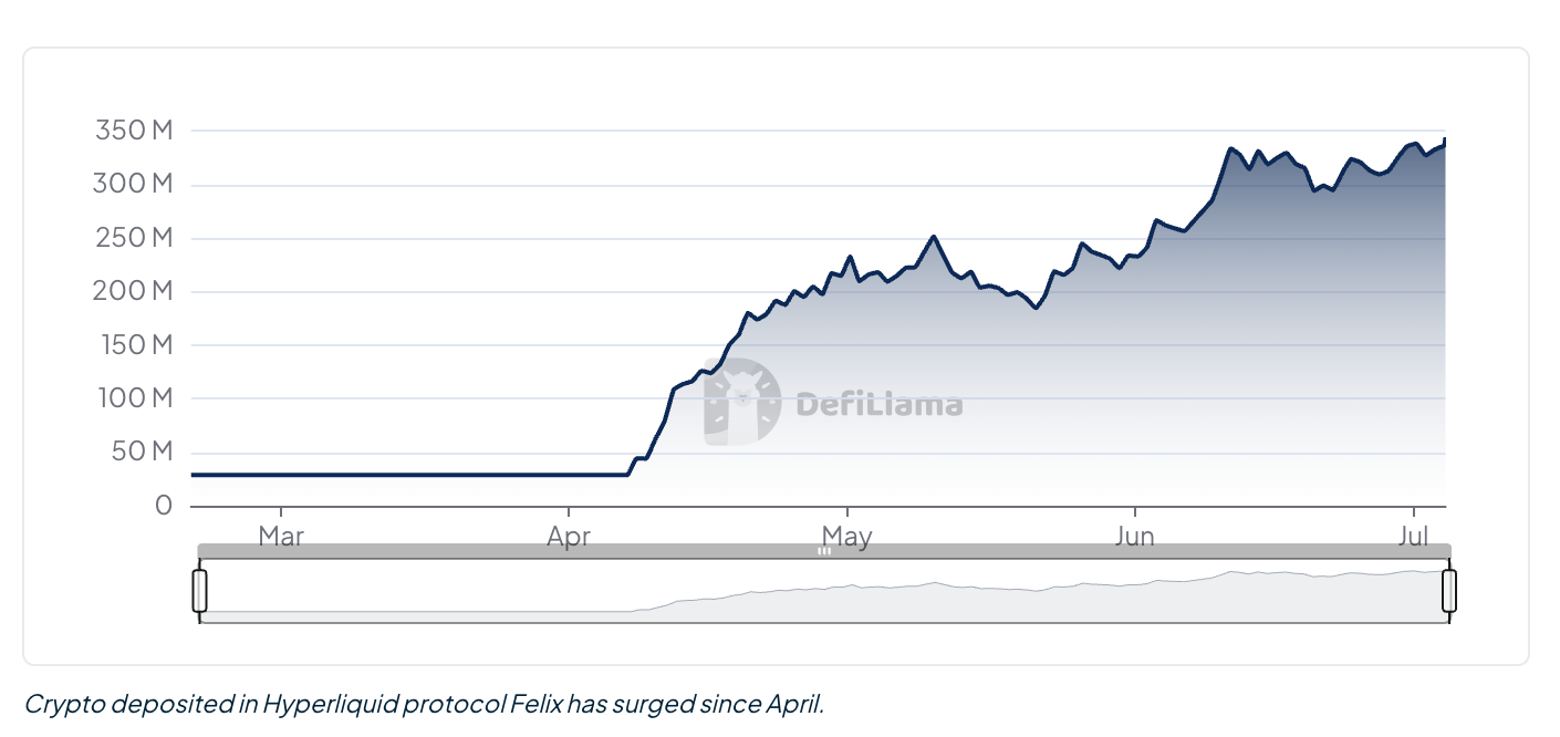 ! (HyperliquidプロトコルFelixに預けられる暗号通貨の量は4月から急増しています。 出典:DLニュース)