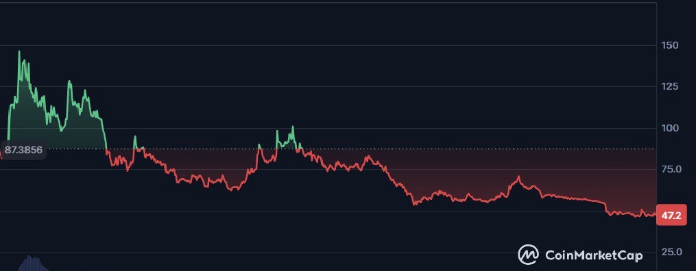 Dashは今月ほぼ45%下落しました。一部のプライバシーコインから資本が流出し、投資家が利益確定に動いたためです。競合のMoneroへの注目が高まり、Dashはパフォーマンスが劣後し流出が発生。デリバティブ取引ではショートポジションが増加し、多くのトレーダーがDASH下落に賭け、下落圧力が加速しました。11月初旬にDashは50%以上急騰したものの、利益確定売りが相次ぎ、強いサポートを突破して45%近い下落となりました。月末時点でDASHは1枚47ドル付近で取引されています。