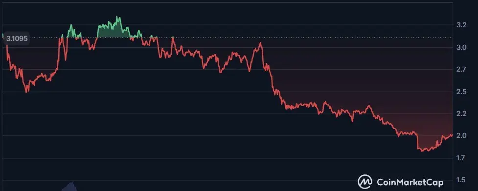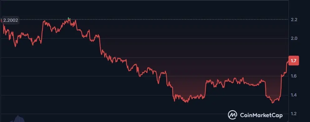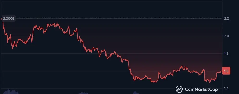 2.2から1.5まで、TONコインは大幅下落後の回復に苦戦しています。元々Telegramと関係していましたが、現在は支払い・dApps・DeFi・NFTなど多様な暗号サービスのための高速・低コストのブロックチェーンインフラを提供しています。