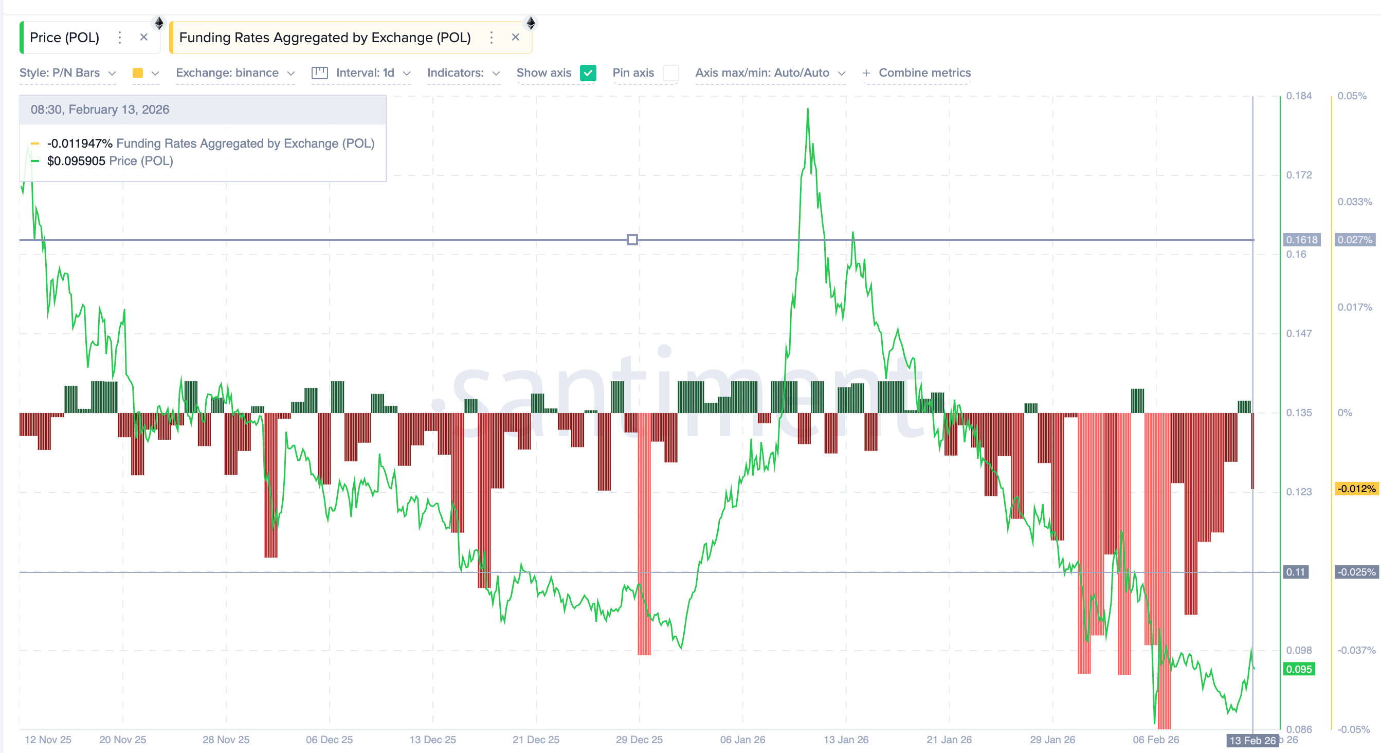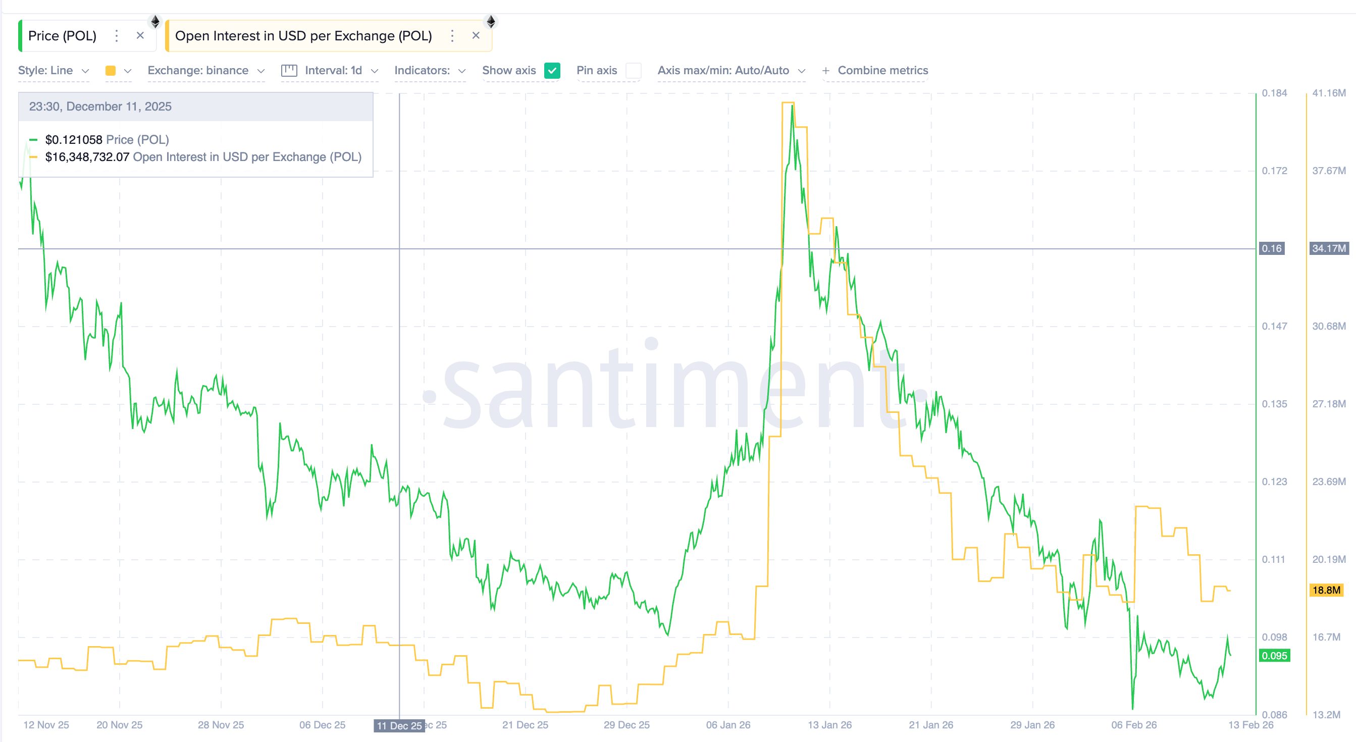 这种“未完成的抛售”在衍生品数据中得到了印证。与 1 月份牛市时杠杆率飙升(未平仓合约短期内暴涨超 140%)不同,尽管 POL 价格近期上涨了近 13%,但未平仓合约(OI)仅维持在 $1,880 万美元附近,并未显著放大 。这反映出杠杆资金并未大举进场,市场投机情绪偏于谨慎。