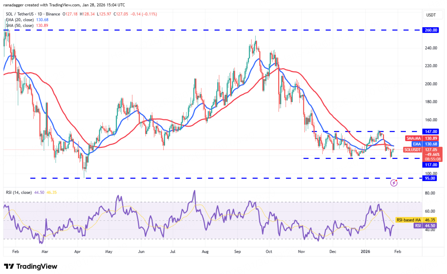 SOL found support near $117 and rebounded, indicating some medium-term buying interest. However, it remains below major moving averages, with the rebound mainly technical.