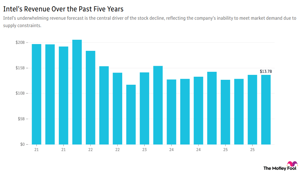 **Intel **(INTC +0.61%) was down more than 10% in pre-market trading, after results detailed an underwhelming revenue forecast, with CEO Lip-Bu Tan expressing disappointment “that we are not able to fully meet the demand in our markets.”
