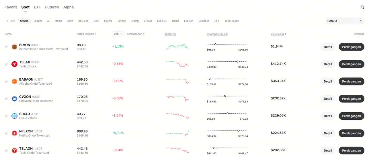 Todos os tokens listados representam ações cotadas em bolsa, são totalmente colateralizados e suportam transferências e negociação on-chain, com integração fluida entre blockchains e ecossistemas. Ao contrário dos modelos tradicionais de corretagem, os produtos de ações da Gate suportam negociação 24/7, ações fracionadas e transferências on-chain, permitindo que utilizadores globais participem nos mercados acionistas diretamente com USDT—alcançando uma verdadeira negociação sem fronteiras.