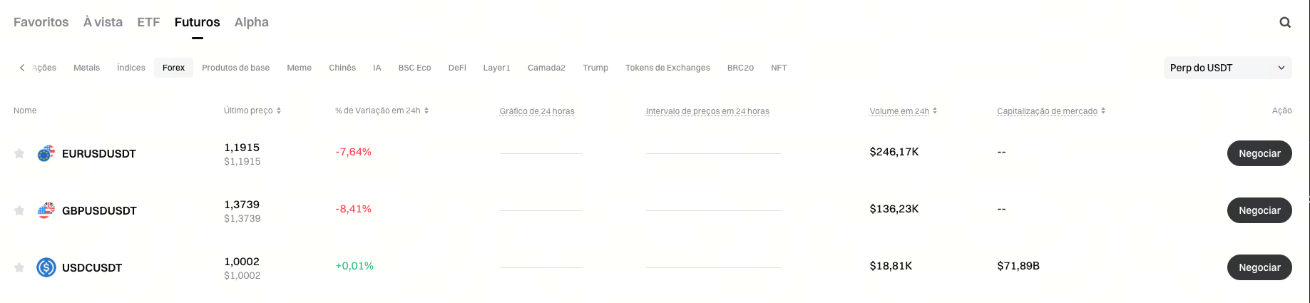 Link de acesso: https://www.gate.com/pt/price/futures/category-forex/usdt