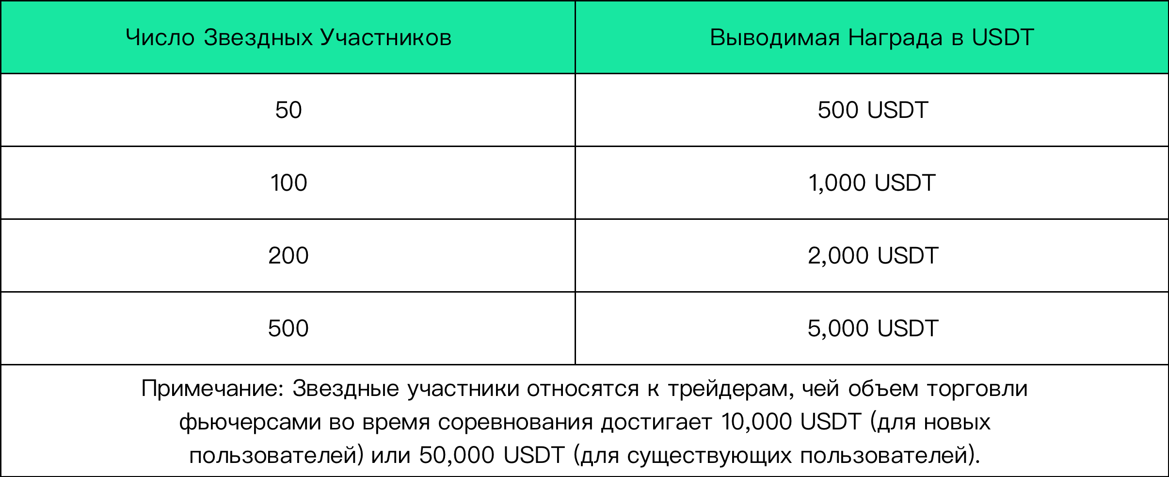 2.Объем торговли в команде = сумма объема торговли внутри команды. Пользователи, совокупный объем торгов которых во время соревнования составил менее 5,000 USDT, не будут допущены к участию в рейтинге.