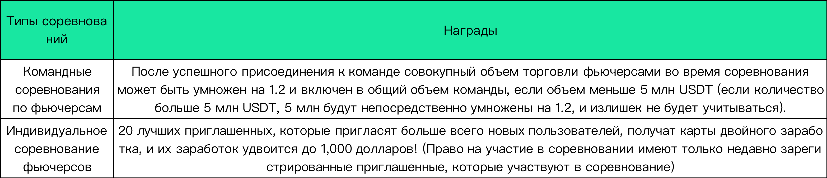 2.Чтобы принять участие в рейтинге объема торгов в индивидуальном соревновании по фьючерсам, совокупный объем торгов должен составлять ≥ 5,000 USDT во время соревнования.