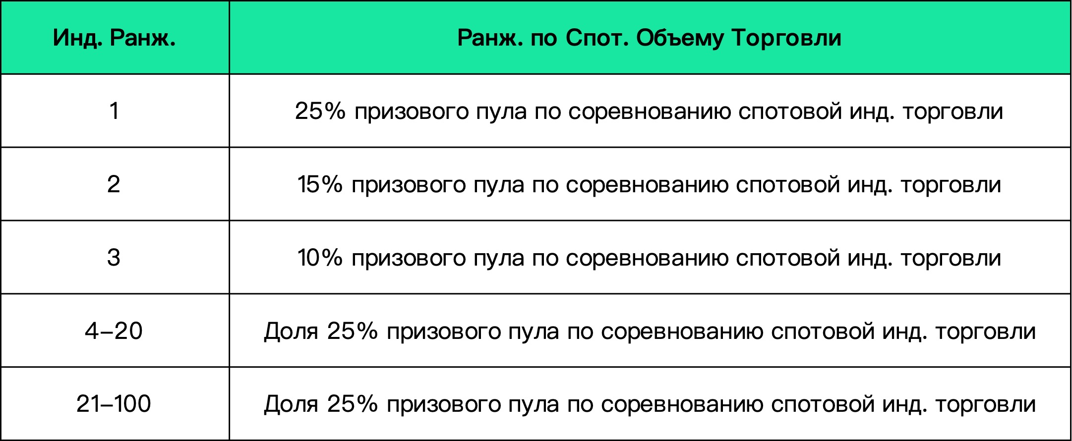 (a) В каждом дивизионе пользователи, участвующие в спотовом индивидуальном соревновании, будут ранжированы в соответствии с объемом спотовых торгов. Подробные правила заключаются в следующем: