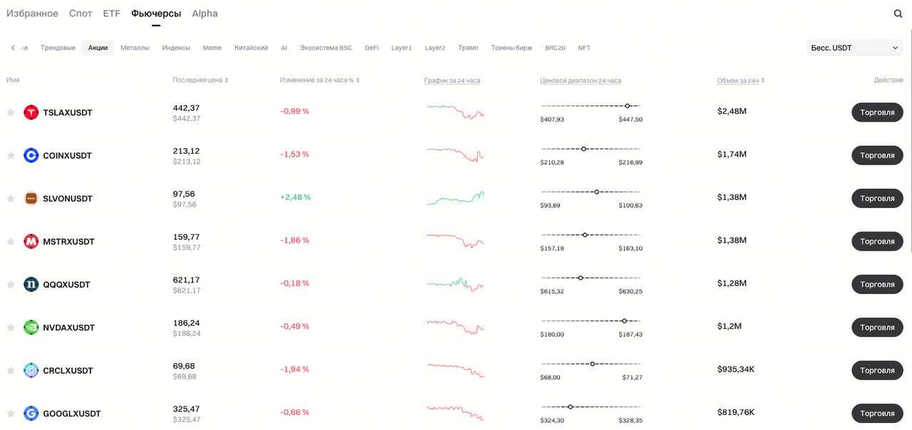 Ссылка для входа: https://www.gate.com/ru/price/futures/category-stocks/usdt