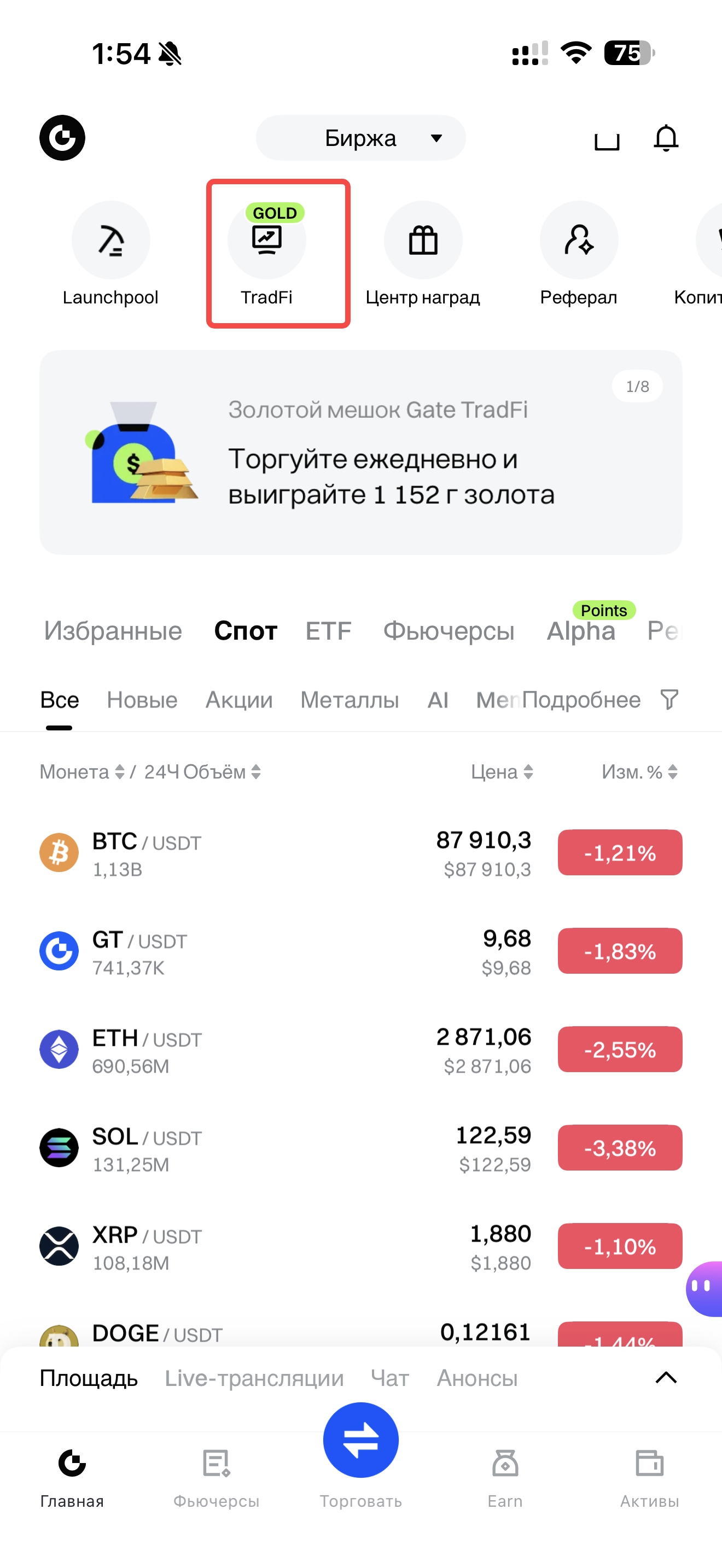 Ссылка для входа: https://www.gate.com/ru/price/futures/category-metals/usdt