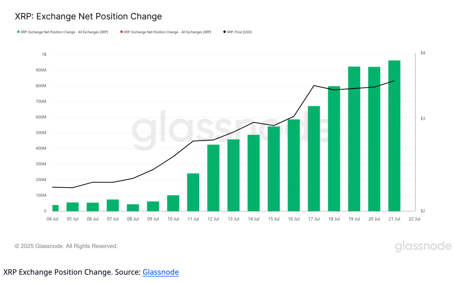 В последнее время инвесторы XRP начали массово продавать, что указывает на снижение уверенности рынка в дальнейшем росте. За последнюю неделю на кошельки бирж поступило почти 450 миллионов XRP, стоимость которых превышает 2.81 миллиарда долларов. Увеличение объема поставок показывает, что держатели переводят свои активы на продажу, что обычно является медвежьим сигналом на рынке.