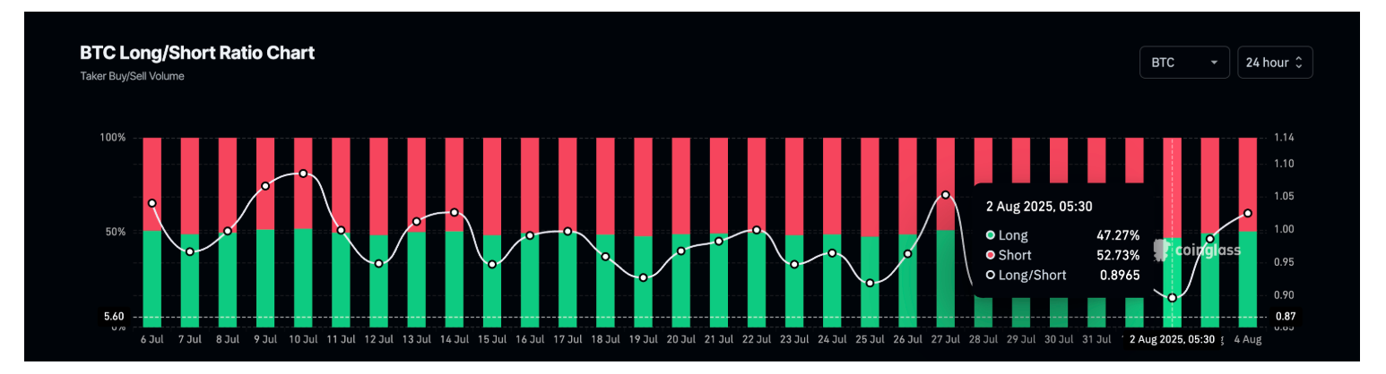(Соотношение лонгов и шортов по Биткойну:Coinglass)