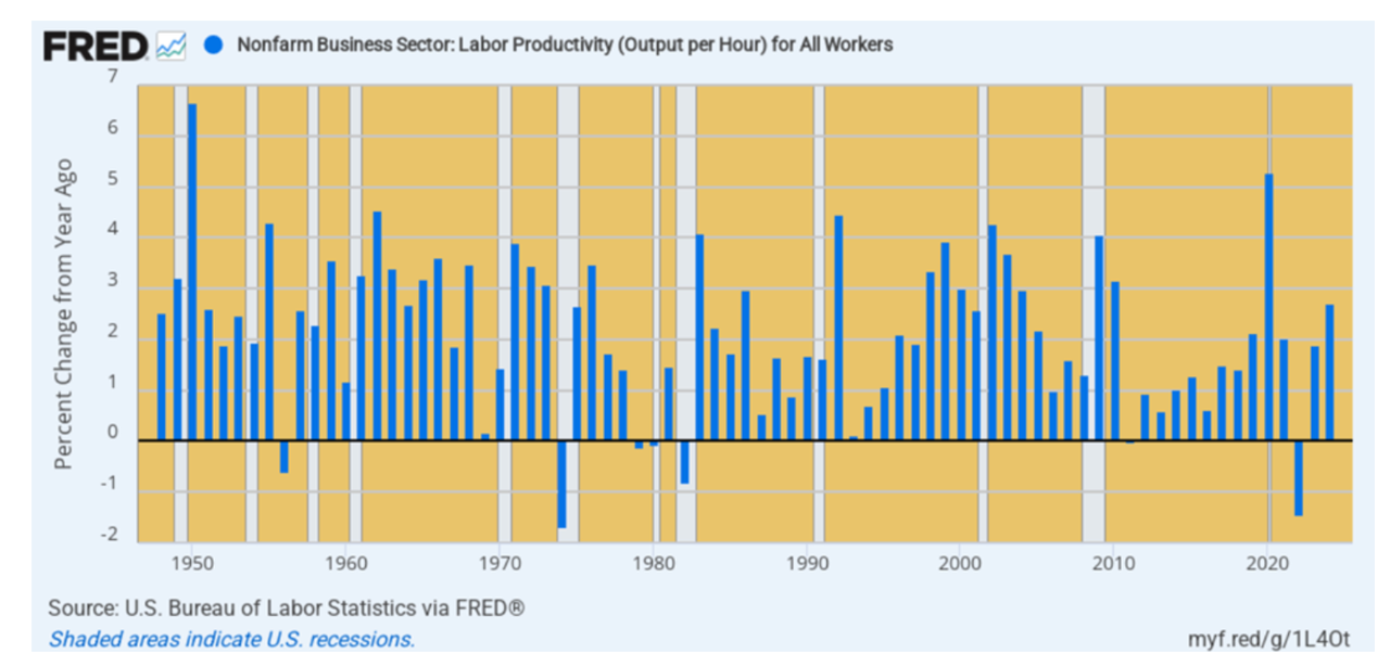 Идеальный сценарий (повышение производительности ↑ + снижение затрат на труд ↓):Сильный дефляционный сигнал, значительно увеличивает ожидания по снижению процентных ставок, сильно бычий рынок для Биткойна.