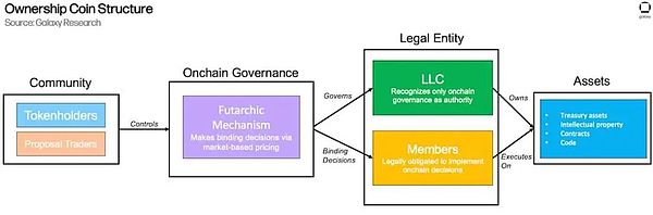 Токены собственности обещают преобразовать DAO в цифровую компанию с юридической привязкой и экономической последовательностью, где код, капитал и право будут функционировать как единая система. Держатели токенов не получают действительные права собственности через законное владение, а вместо этого осуществляют принудительный контроль над реальными активами и реальными сущностями. Решения, принятые держателями токенов в сети, будут иметь юридическую силу.