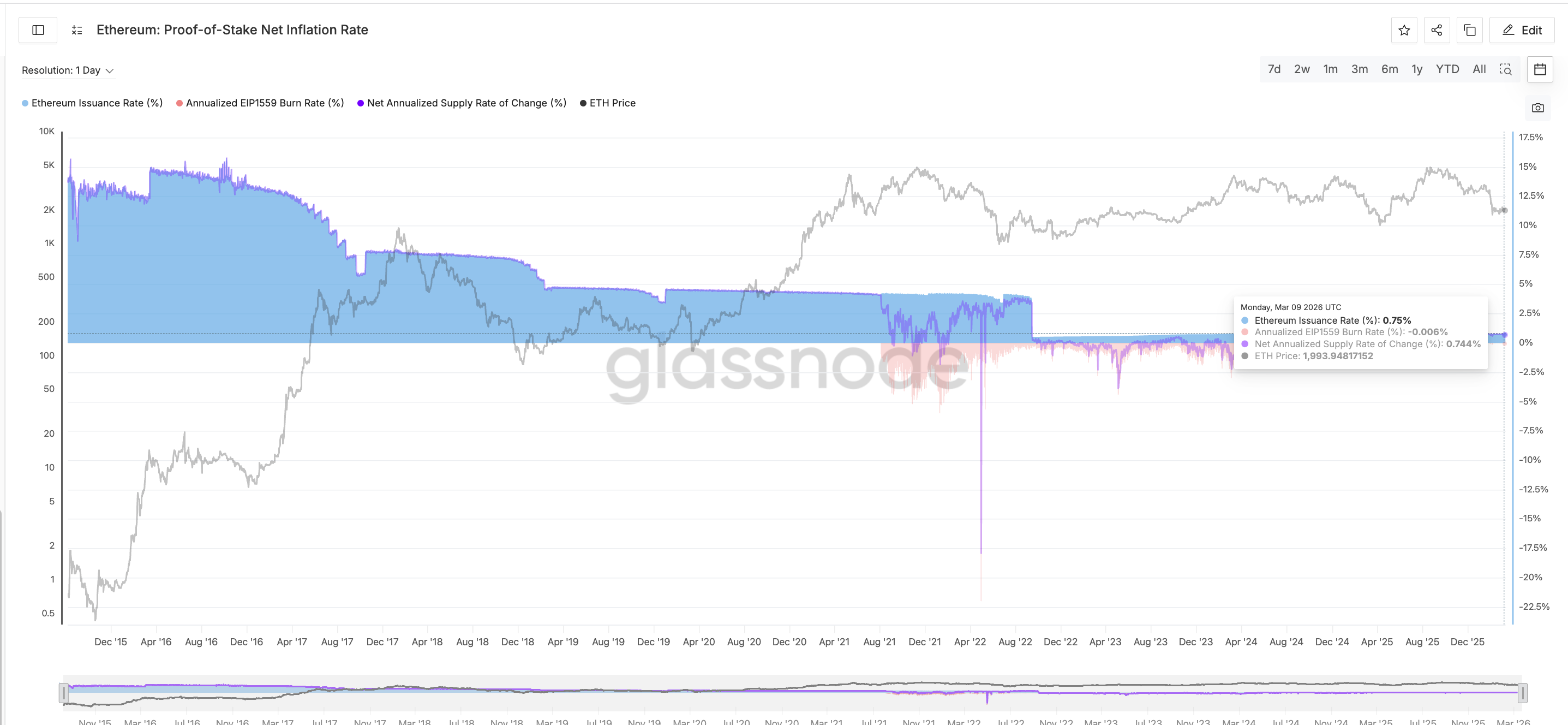 Динамика предложения ETH также меняется. После обновления Dencun объем активности переместился на Layer 2, что снизило газовые сборы на основном цепочке, а объем сжигания ETH по EIP-1559 уменьшился. В настоящее время чистый уровень инфляции ETH держится около 0,75%.
