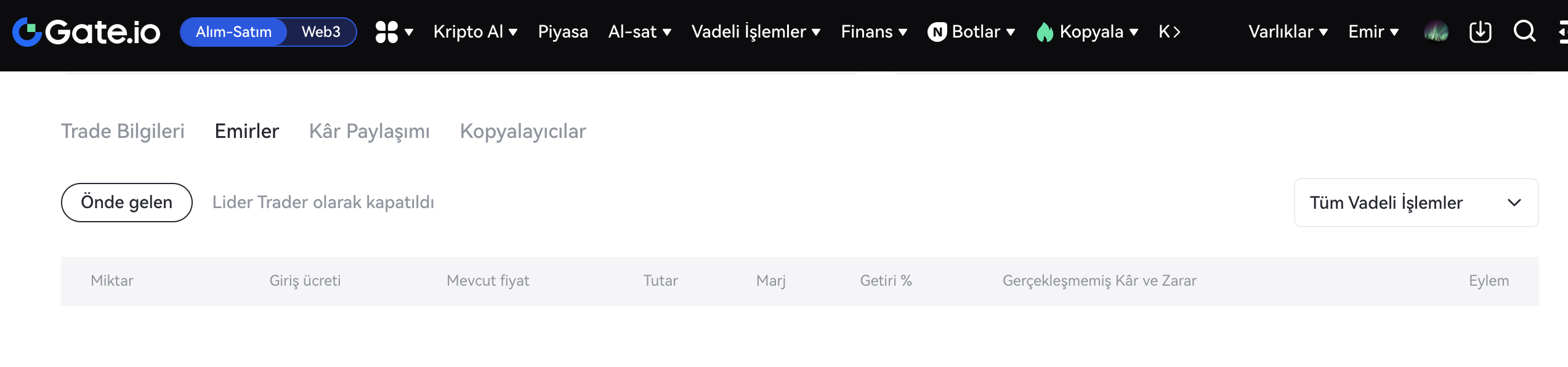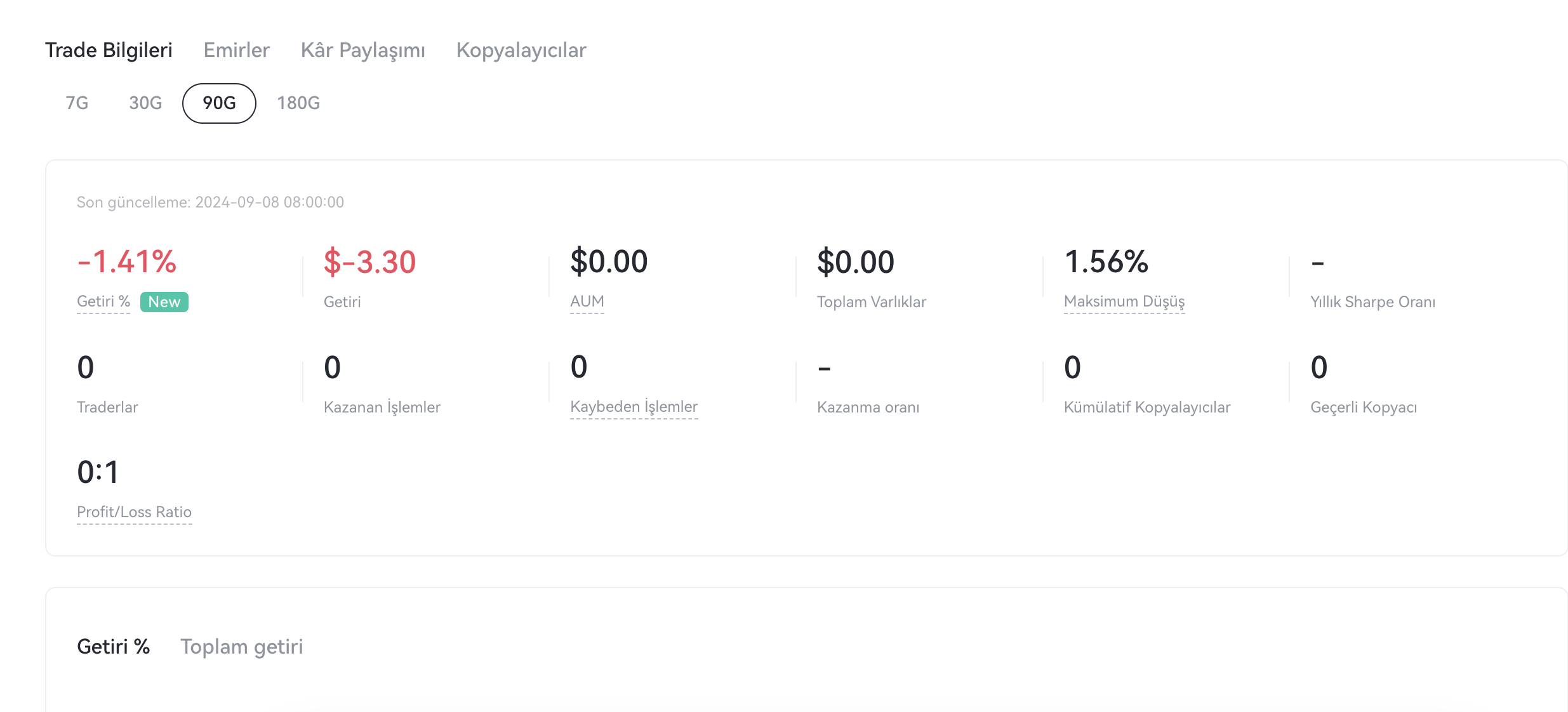 Lider emirlerinizi oluşturduktan sonra, alım satım ölçümleri, emir bilgileri, kar paylaşımı, kopyalayıcı verileri vb. dahil olmak üzere “Lider” bölümünde lider bilgileri kontrol edebilirsiniz.