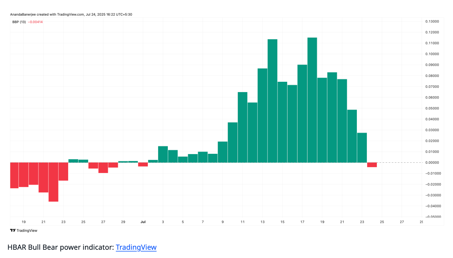 Станом на 22 липня, корекція становила 52%, в цей час ціна HBAR наближалася до $0.27. З того часу корекція вже почалася, що означає, що трейдери можуть знову вибрати фіксацію прибутку в діапазоні корекції 50-60%.