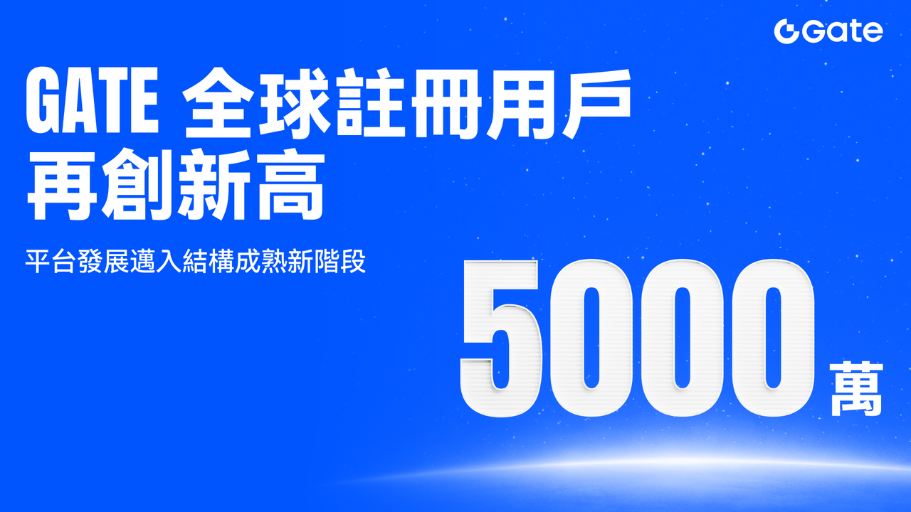 據官方數據顯示,全球加密資產交易平台 Gate 註冊用戶數量已突破 5000 萬。該節點被視為平台發展進程中的重要里程碑,標誌 Gate 正從以規模擴張為主的高速增長階段,逐步過渡至以系統成熟與穩態運行能力為核心的新週期。