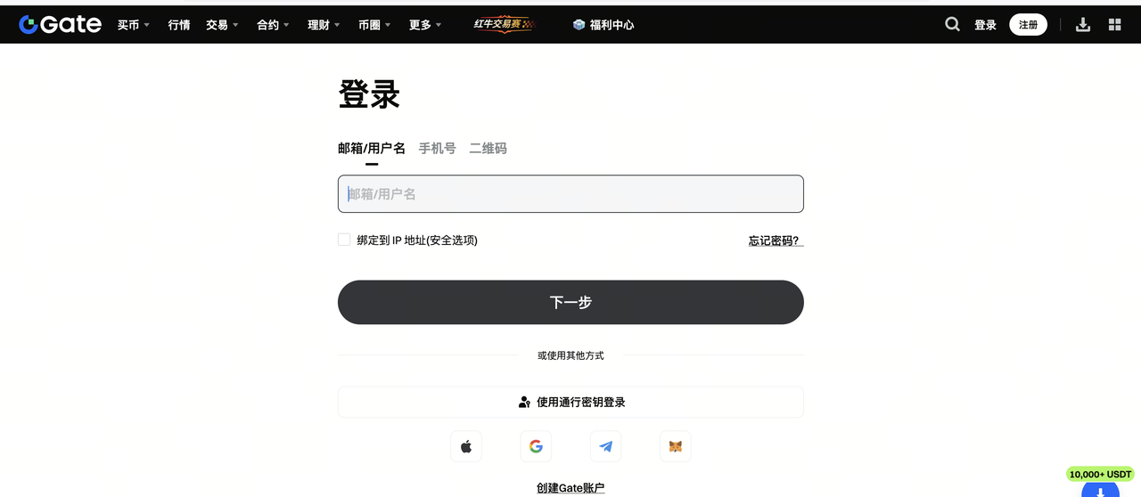 完成註冊後,使用者可透過多種方式登入 Gate 帳戶:
