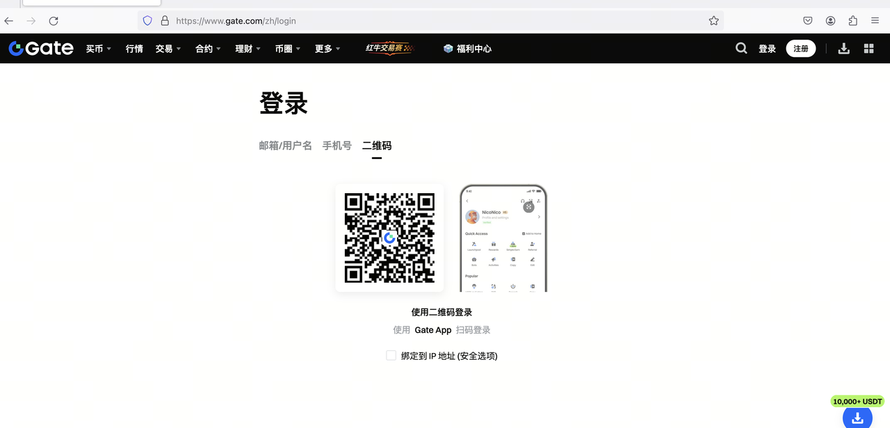 2.Gate APP 掃碼登入: 使用已登入該帳戶的 APP,掃描二維碼登入網頁版。