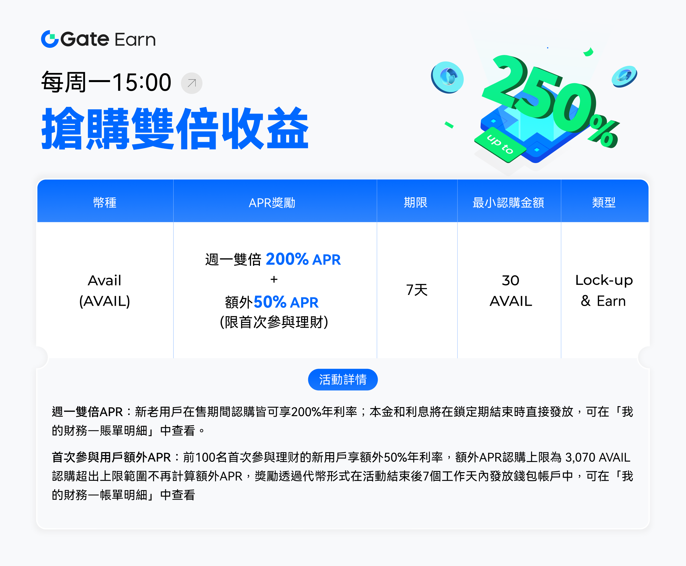 Gate Double Earning Monday:稳盈200%收益,首次参与可享250%年化