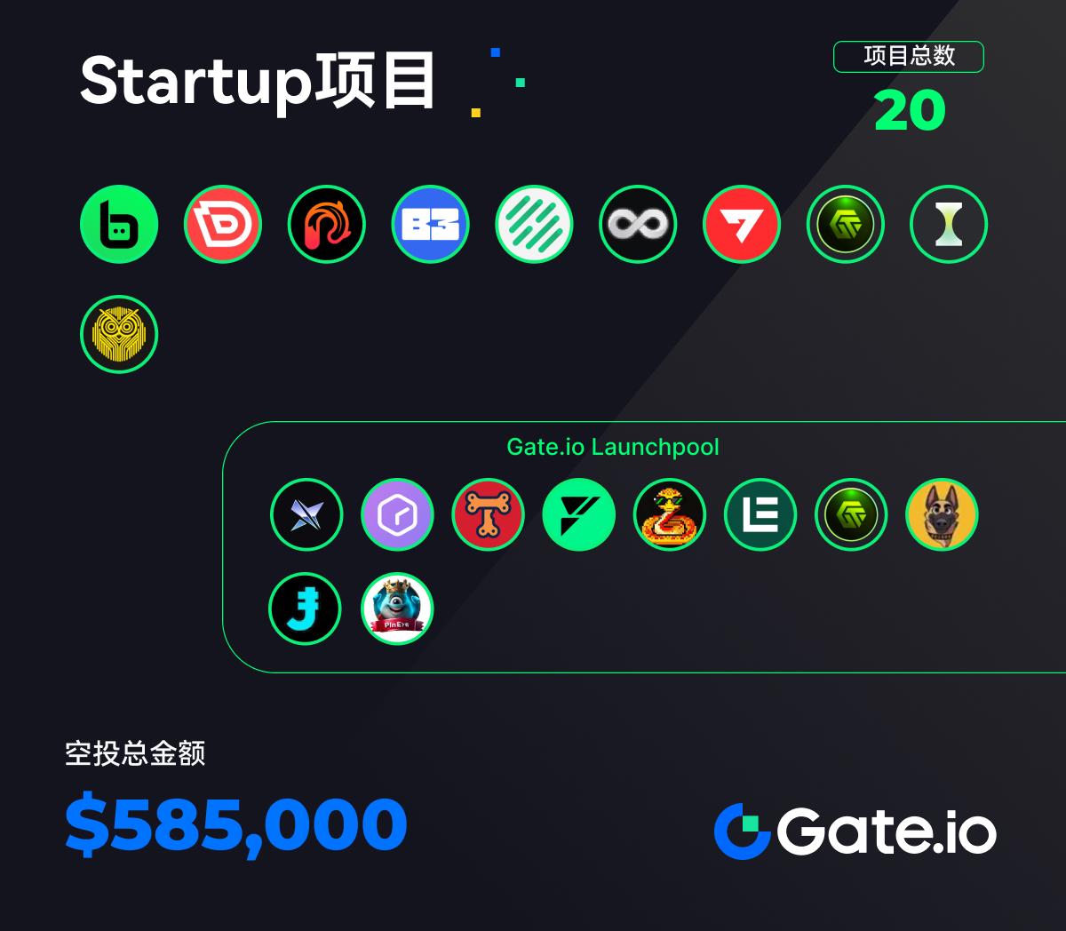 本周期Gate上线了19个新项目,10个Startup项目和10个Gate Launchpool项目,总空投价值为58.5万美元。
