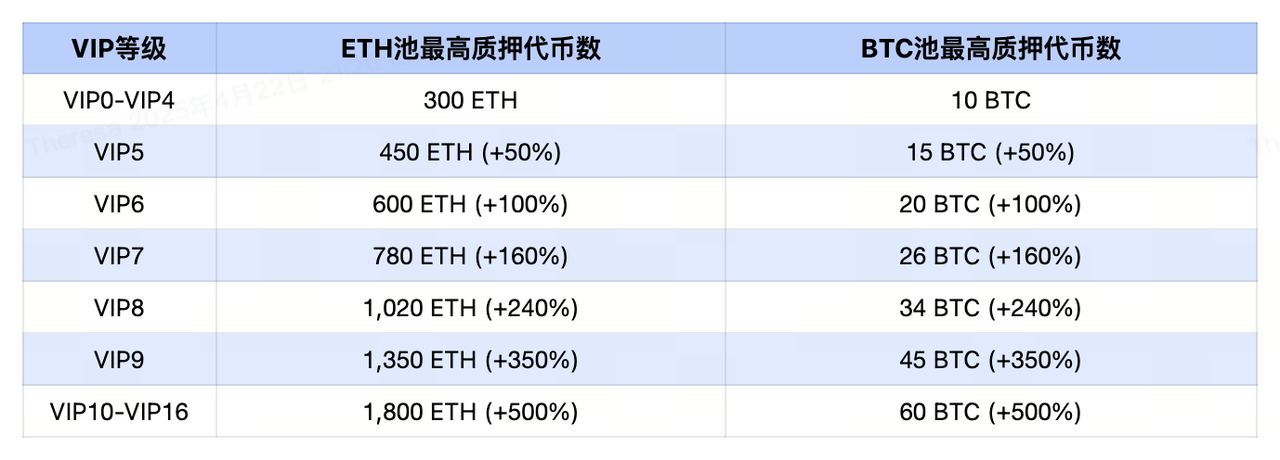 VIP5 及以上用户参与Launchpool享有专属质押额度提升权益,最高可享500%质押额度加成。