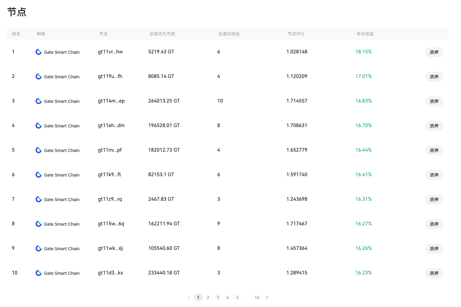 在【节点】中,选择您想参与质押的节点,点击【质押】。