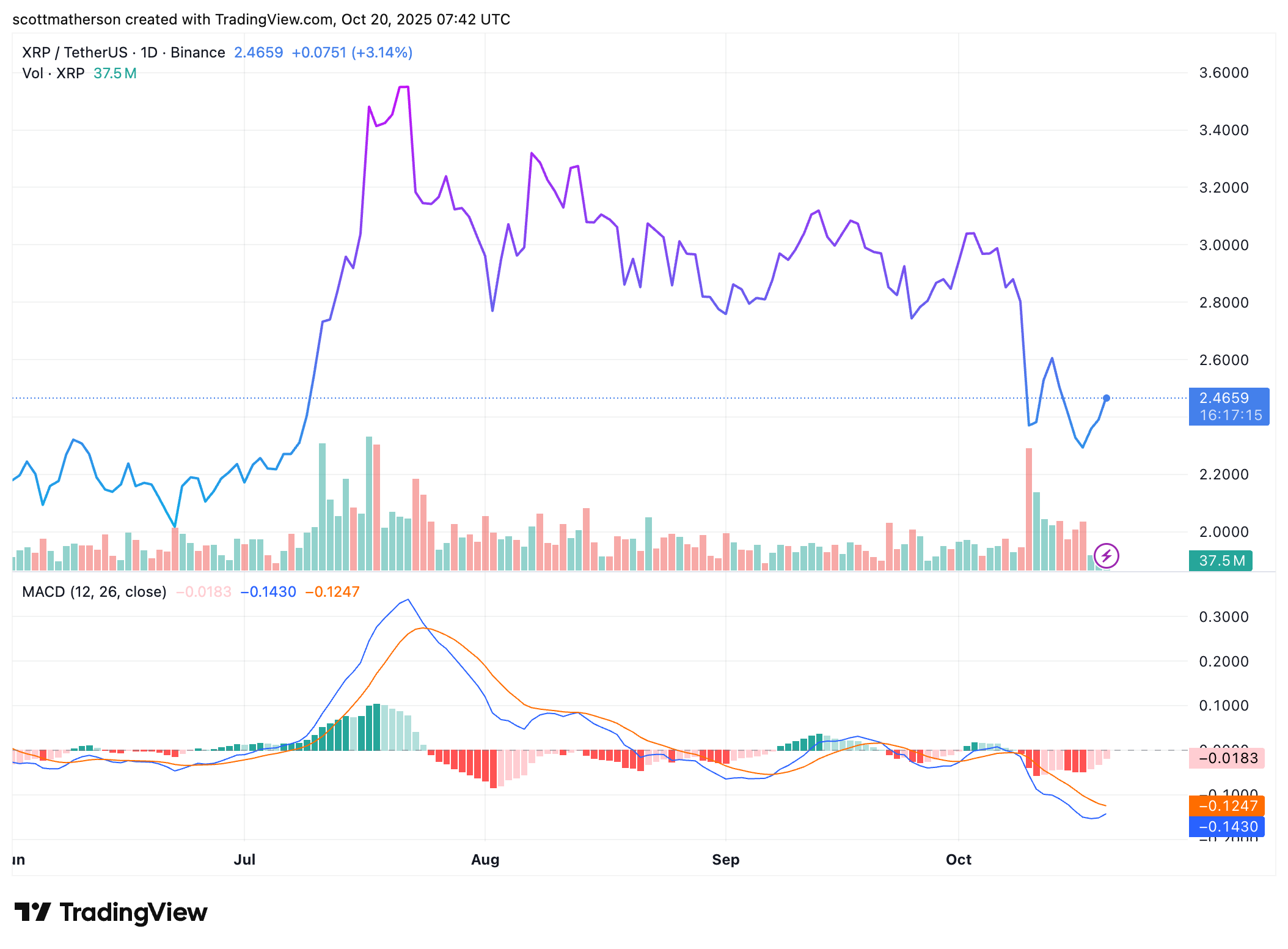 截至撰写本文时,XRP价格约为$2.44,在过去24小时内上涨超过3%,数据来自CoinMarketCap。